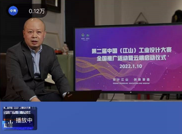 2022年1月10日,第二届中国(江山)工业设计大赛全国推广活动暨云端启动仪式成功举办,根据疫情防控精神和有关要求,活动以线上直播的方式进行。本次活动邀请了浙江工业大学的徐冰副教授进行大赛方案发布及相关参赛内容介绍,并担任主持人。同时,为了更好的推广本届赛事,活动特邀两位中国工业设计领域杰出从业者进行嘉宾分享,光华龙腾奖中国设计业十大杰出青年、凸凹设计创始人李立成先生;光华龙腾奖中国设计业十大杰出青年、大业工业设计集团联合创始人李龚川先生莅临直播间,分别作了“创新有道”和“工业设计中CMF设计的重要性”的主题演讲,分享了设计驱动创新,创新赋能品牌的经验与故事,掀起了直播活动高潮。