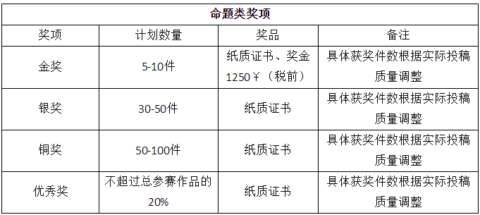 本次大赛共设置、金、银、铜、优秀奖四个奖项,其中对“命题类:相生”赛道的金奖设置奖金,其他奖项和自由类不设置奖金。奖金由合作方“云创展赛”发放。具体获奖人数根据投稿数量及质量调整。